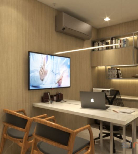 Clínica de ortopedia com 440 m2 de área, composta de 08 consultórios, Salas de Gesso, Sala de RX e áreas de administração