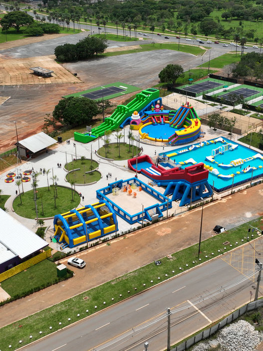 Parque de trampolins e brinquedos infláveis. Área de construção 15.600 m2, distribuídas em pátio de brinquedos, banheiros coletivos, salões de festas, lanchonete e área de administração.