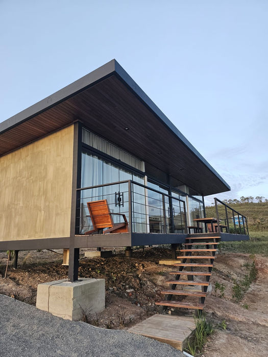 Construção de 02 chalés em estrutura metálica com duas suítes em cada unidade e execução de redes de infra estrutura para toda a área do terreno.